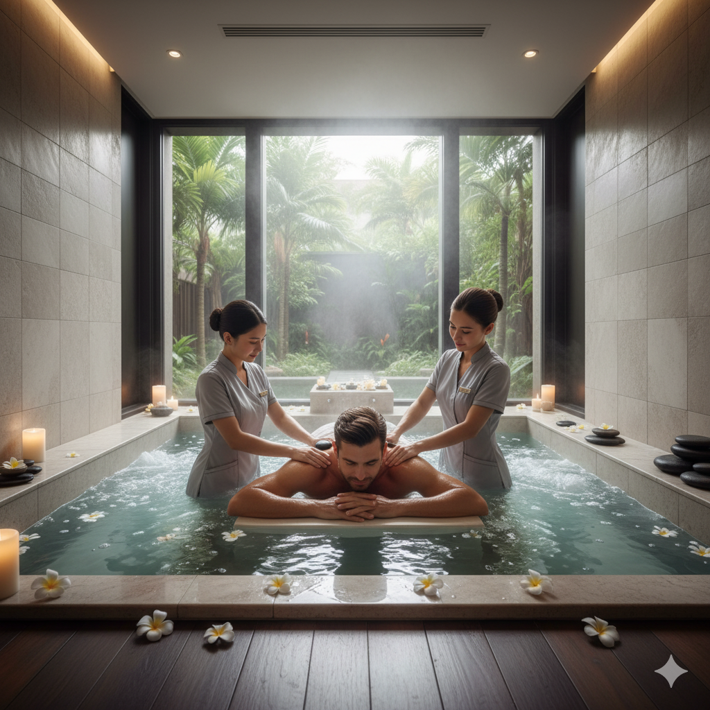 Indulge in the ultimate relaxation with our Six-Hand Massage at the best spa in Visakhapatnam. Three expert therapists work in perfect harmony at our massage spa in Visakhapatnam. delivering synchronized movements for deep relief and total rejuvenation. Enjoy this luxurious treatment at our spa center in Visakhapatnam, designed to melt away stress and tension. Whether you seek a full body massage in Visakhapatnam, or a unique therapeutic experience, we provide the best massage service in Visakhapatnam. Visit us for the best body massage in Visakhapatnam,and discover unmatched relaxation at our spa in Visakhapatnam,